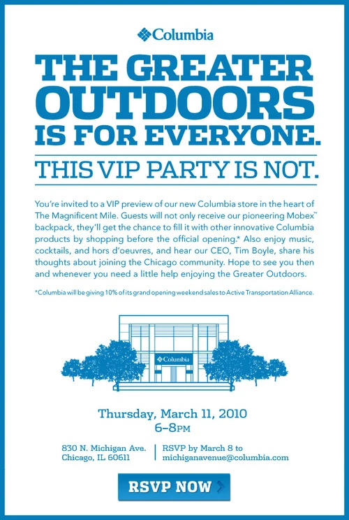 Purpose: Introduce the city of Chicago to the brand new Columbia Store.